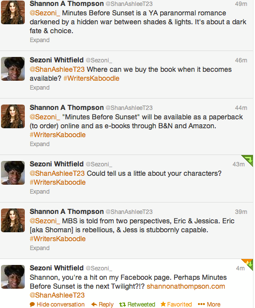 4. Sezoni on Twitter’s #WritersKaboodle (April 18, 2013)