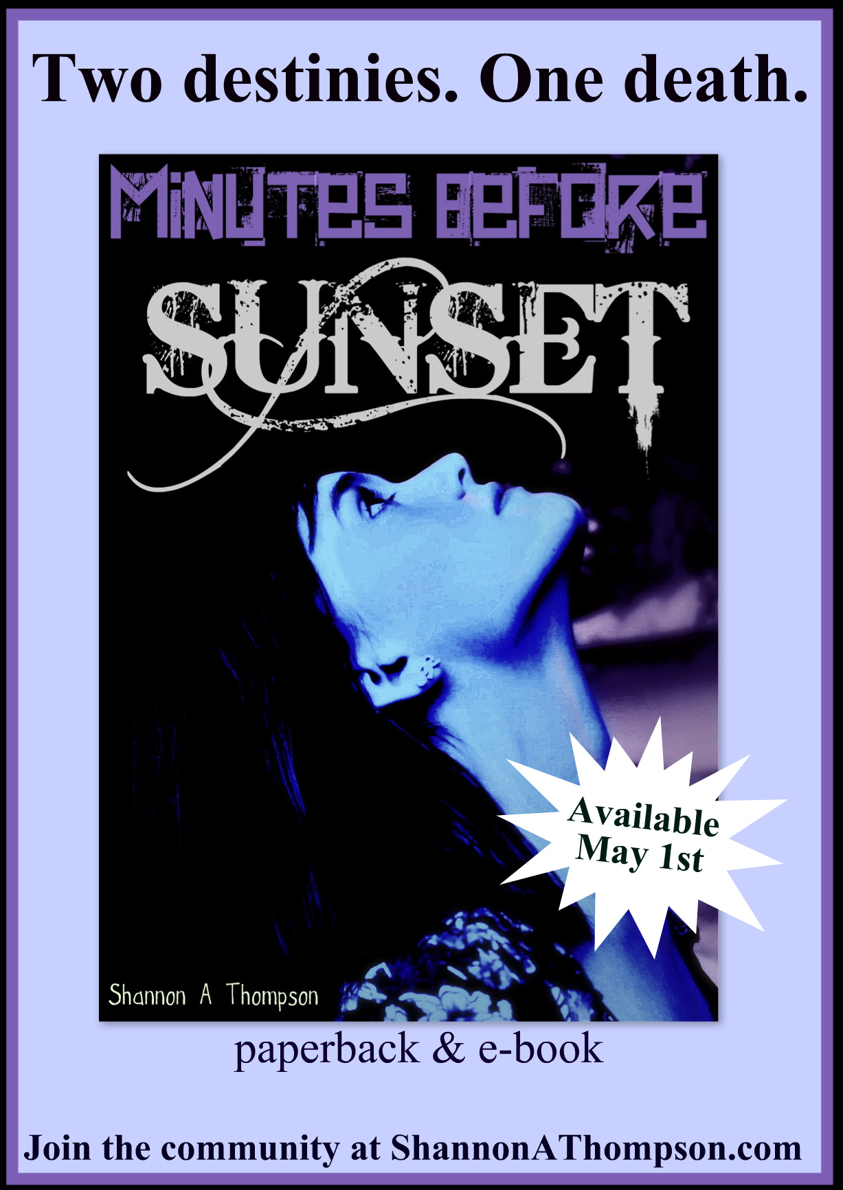 • Accept interviews, but also apply for them: Currently I’ve done five interviews for Minutes Before Sunset, and I’ve added them to my Extra’s Page: If you want to interview me, please don’t hesitate to send an email to ShannonAThompson@aol.com
