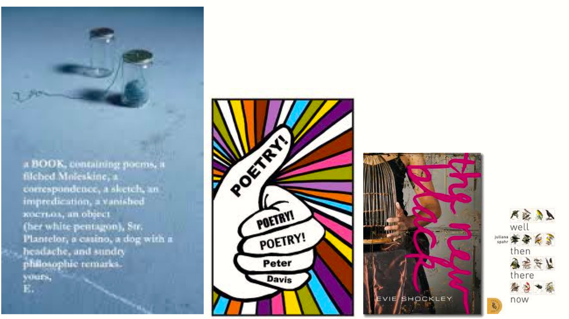 4. Well Then There Now by Juliana Spahr: This collection is a study on ecopoetics. It’s very interesting, but I often got lost on some of the language, perhaps because I’m unfamiliar with Hawaiian terms. However, I’d still give it a four-star rating, because my professor allowed me to understand. Alone, I’m unsure what I’d rate it.