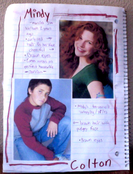 COLTON: Mindy’s ten-year-old, annoying, pries, brown hair with pudgy face, brown eyes.
