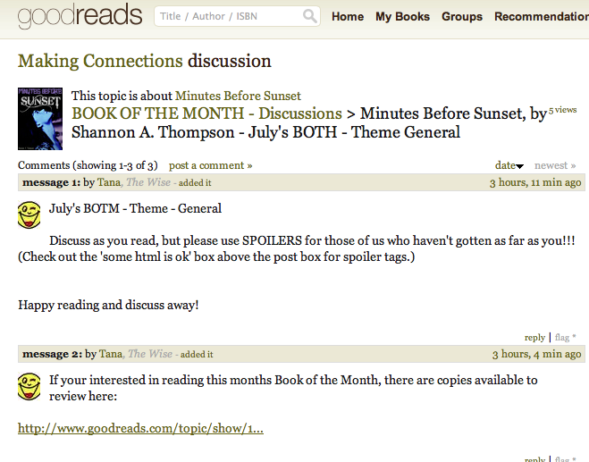 Minutes Before Sunset is officially Goodreads Book of the Month for July.