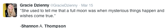 Special thanks goes out to actress, director, and dancer, Gracie Dzienny, for quoting my first novel, November Snow, on her Twitter. She is known for her work on Nickelodeon’s Supah Ninjas and multiple shows on AwesomenessTV. Visit her YouTube channel by clicking here.