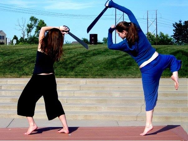 And I’ve shared one of my secrets: I have a knife collection. Below is a photo I did when I was 17 that was inspired by The Timely Death Trilogy. That is my machete. And, yes, I’m fighting myself, and those pants are from Thailand. I believe I was 17 here.