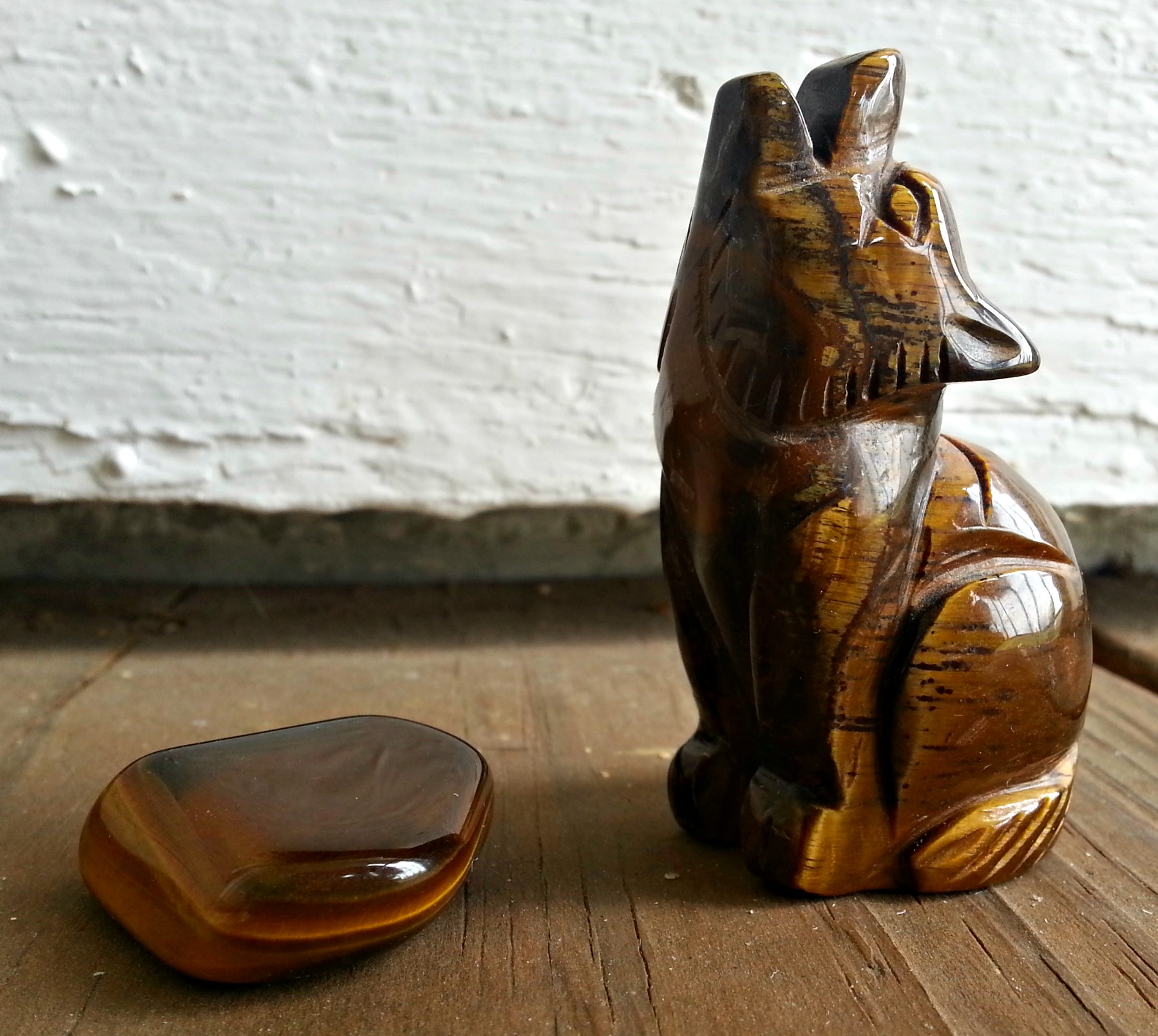 Fun fact: I’m obsessed with meanings behind things. Whether it is the meaning of a name or the meaning of a certain type of flower, I could spend hours reading about how certain labels came about. Tiger’s Eye is my favorite stone. They are beautiful, but they are also associated with protection and clarity. Below, you’ll see two Tiger’s Eyes that I keep on my desk. One is a stone I was gifted, and the other one is a statue of a coyote that a very kind woman carved for me after my husky passed away in 2007. These stones remind me of many things, such as my love for my dog, Shadow, but they mainly remind me of the clarity I believe in that I am doing the right thing by following my dream as well as the protection I receive from all of my loved ones, passed on and still alive.