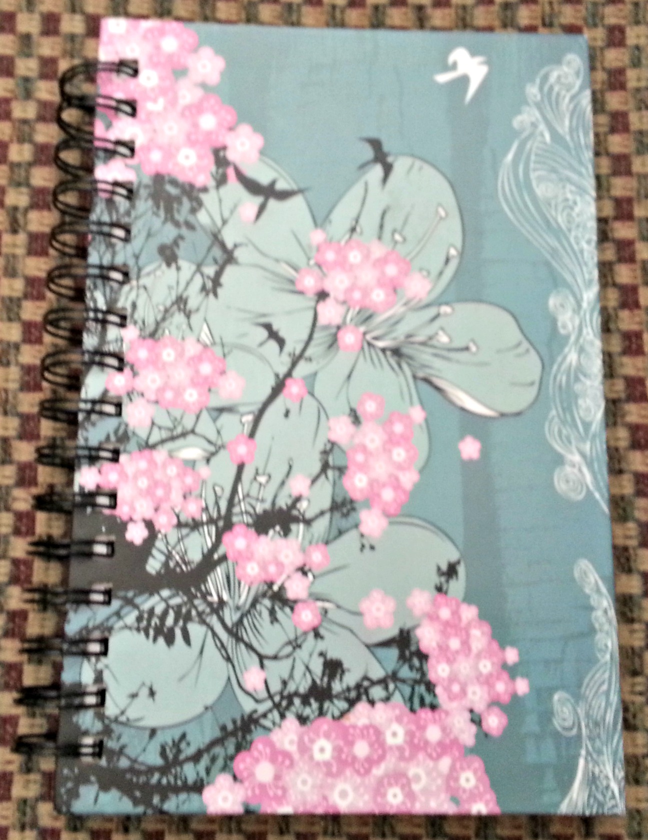 As an avid reader and writer, I spend enormous amounts of time in bookstores. In fact, I began spending so much time in my local Barnes & Noble that most of the workers joked about paying me because they saw me helping customers so often. One night, while brousing the bookshelves, I found this postcard. (I apologize about the quality, but the postcard is four years old, and it’s taped inside the notebook I share below.)