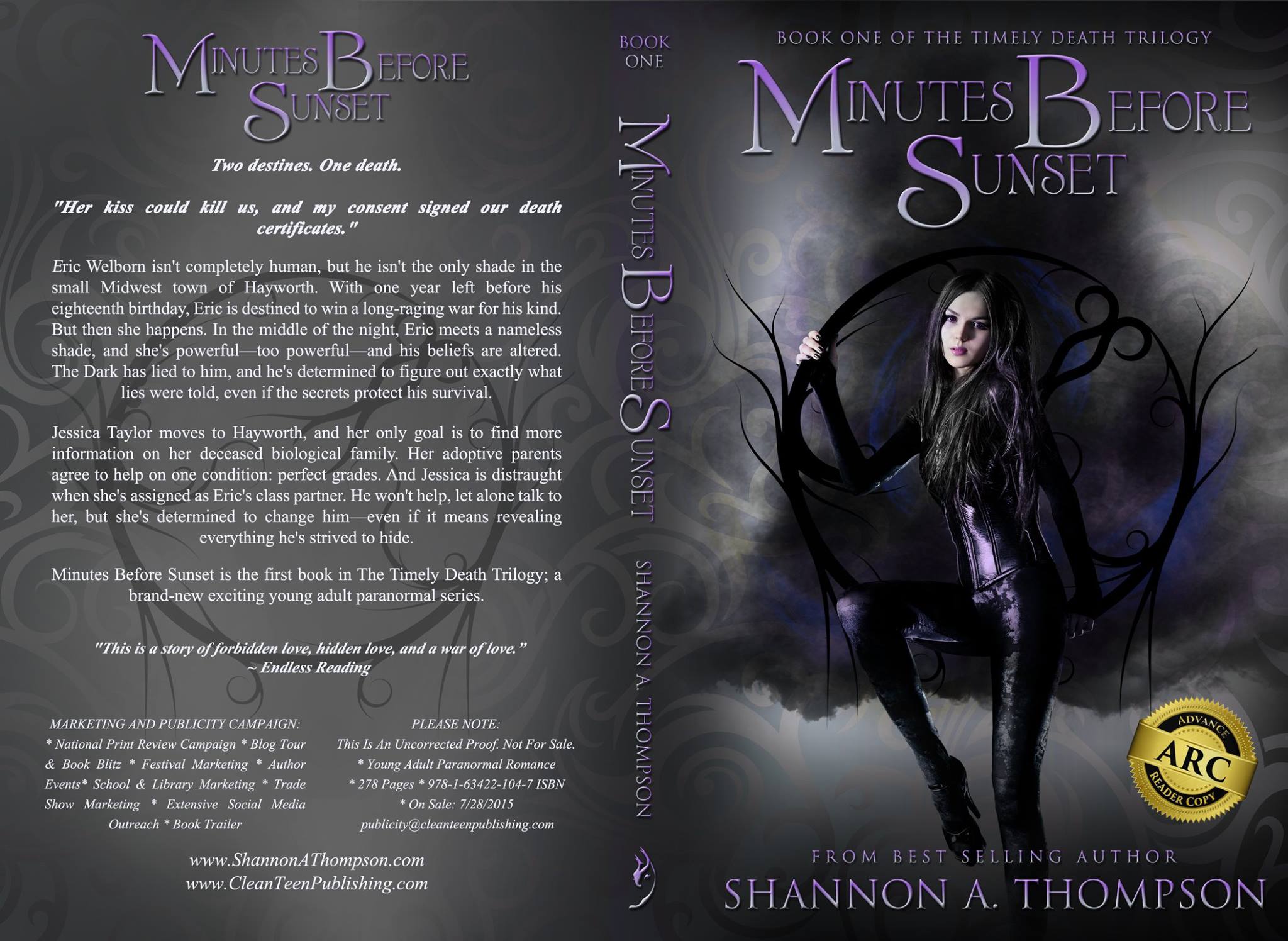 logoThe time has come. Today, we have a cover reveal for the second edition of Minutes Before Sunset, book 1 of The Timely Death Trilogy. This novel releases on July 28, 2015 by Clean Teen Publishing, and I would like to send a huge THANK YOU out to their team as well as all of the websites who are supporting me today (in order of sign-up).