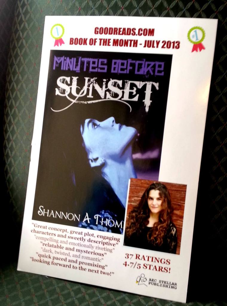 Anyway, if I had to end this celebration with anything, I’d tell readers THANK YOU THANK YOU THANK YOU. You are incredible. You amaze me, and you are the reason I still have hope for my writing to this day. You gave me the experience of a lifetime, reviewing and requesting for bookstores to hold my novel in their stores. Because of the Timely Death trilogy, I was invited to speak during BFest and a Valentine’s Day event at four different Barnes & Nobles. I saw my book placed on the shelves beside Twilight. I spoke about villains at Wizard World Comic Con. I had signings in coffee shops, hookah bars, and more. I made my first book box, heard my first audiobook with dual narrators ADD narrator video, and received my first fan art. Celebrities quoted the story. Minutes Before Sunset won Goodreads Book of the Month in an exclusive book club group! I could honestly go on and on.